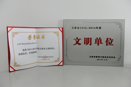 荣获了2012—2014年度天津市文明单位,这是公司在两年一次的天津市“文明单位”评选中连续第4次获得该殊荣。